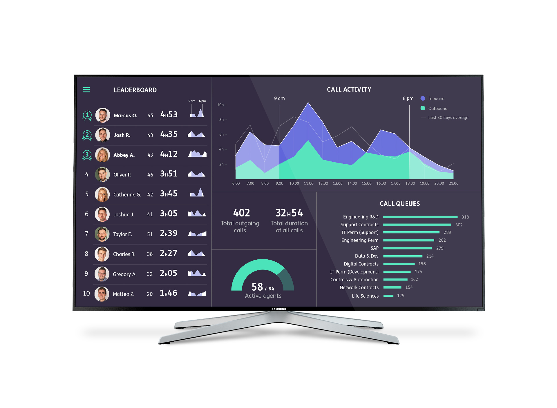 How can a technical recruitment agency add a friendly competitive spirit in the office? The challenge was to design a leaderboard that highlights some of their more nuanced metrics and gives their sales team a deeper understanding of their activity. All at a glance.