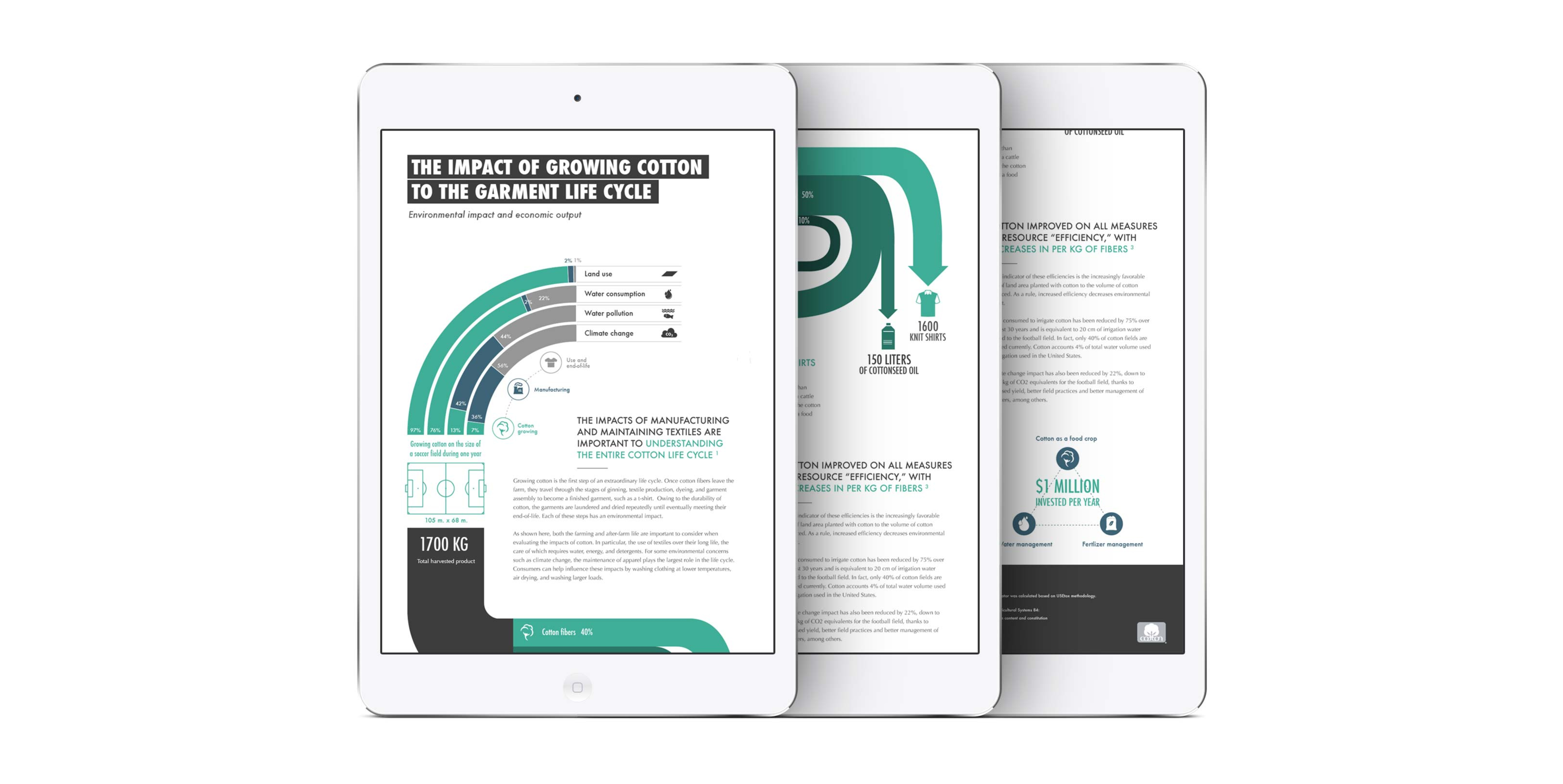 This infographic examines the life cycle of cotton, from cultivation to final products, and highlights Cotton Inc.'s efforts to reduce cotton's environmental impact.